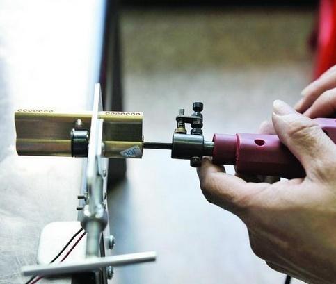 锁芯是装弹子跟钥匙的地方,锁芯内的弹子分内弹子和外弹子,圆柱形,长短不一,装在内外锁芯的圆孔中,一般有3--5组弹子,并由装在外锁芯圆孔中的弹簧顶住。